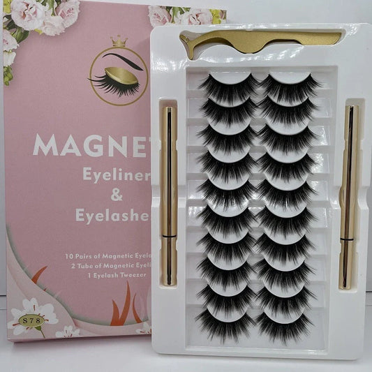 10 pairs of non-bleaching waterproof magnetic false eyelashes with pure handmade construction and long-lasting wear that maintain their original colour through daily use