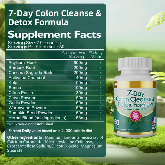 7-Day Colon Cleanse & Detox Formula Capsules with Natural Fibre Blend