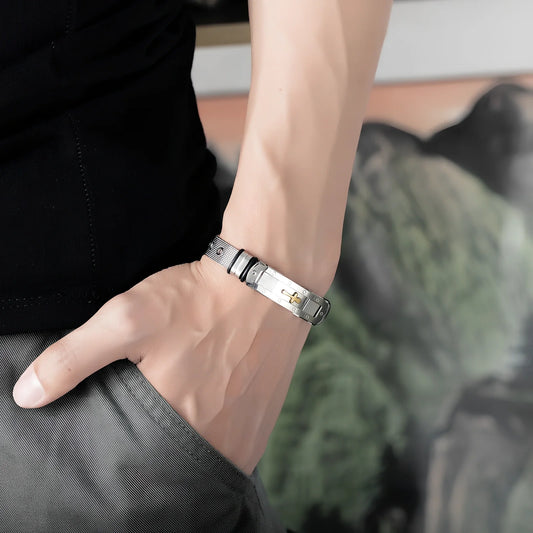 Adjustable Stainless Steel Cross Bible Charm Bracelet for Men 12mm Width Rope Chain