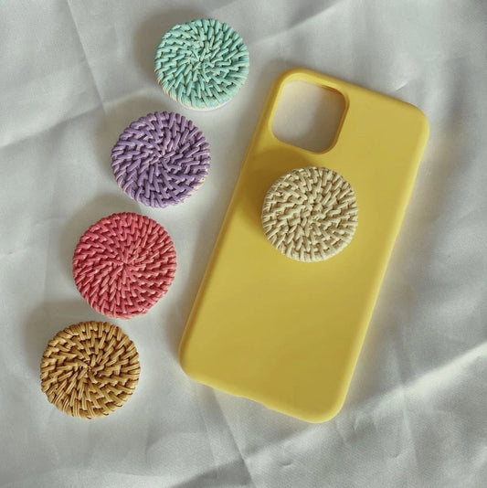 Bamboo woven telescopic mobile phone folding stand with adjustable 180° viewing angles and universal phone compatibility from 4.7 to 7.2 inches