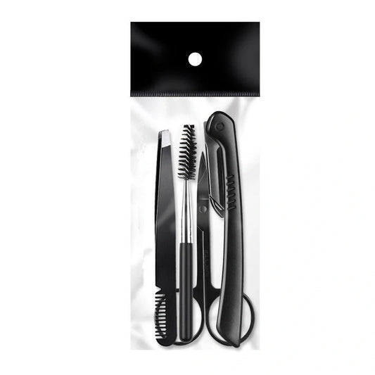 Beauty Tools Black Eyebrow Trimming Set with 11-piece kit including bone bag for precise eyebrow shaping and maintenance