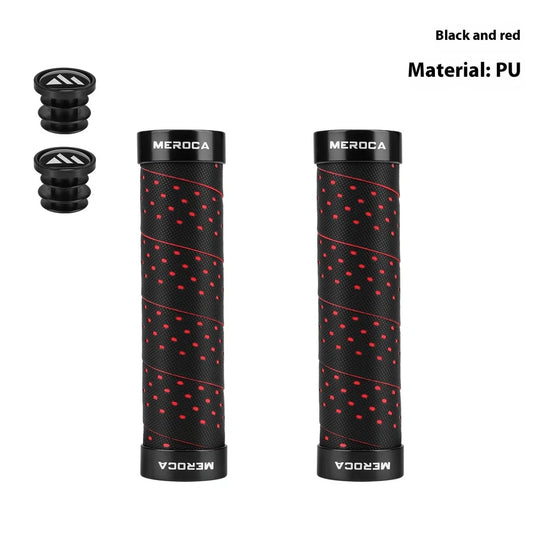 Bicycle handlebar grip cover with lockable anti-slip winding design, made from PU and silicone materials in 22.2mm diameter, available in four colour combinations including black-red and black-blue variants