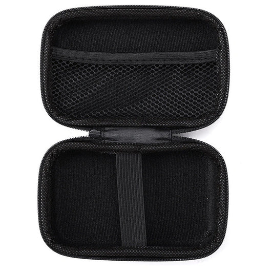 Black composite material storage box measuring 13.5x9x5cm for organising earphones and data cables with thermal transfer printing process