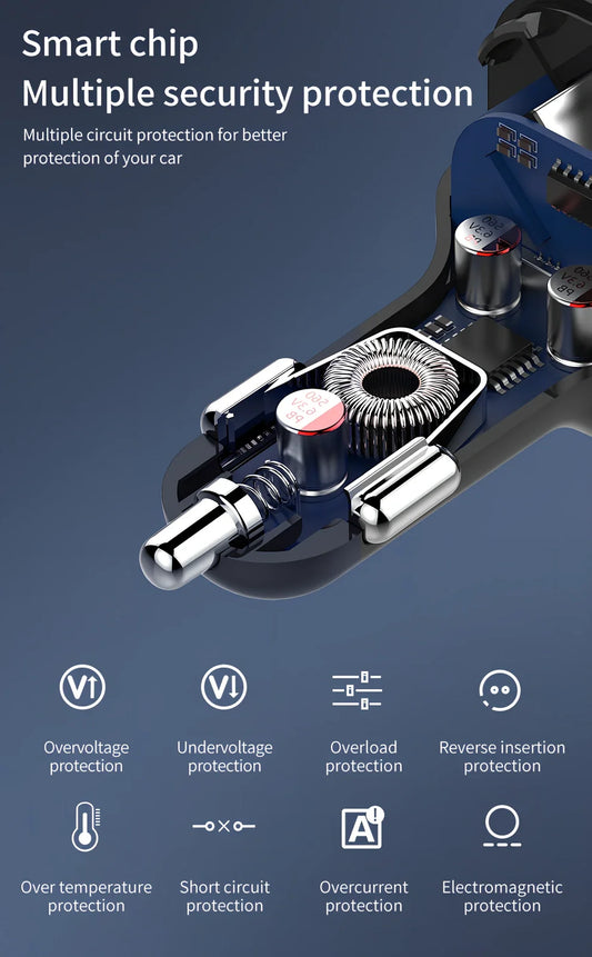 Car 4-Port USB Charger with 3A Output for Multiple Devices