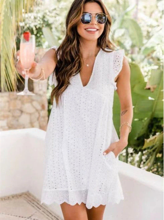 Chic Sleeveless V-Neck Lace Pocket Dress