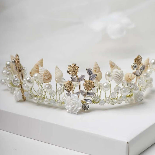 Conch shell hair band with Baroque-inspired design for photo studio sessions and wedding styling, measuring 4cm wide with natural shell construction for authentic accessory looks