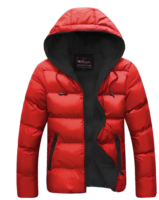 Cotton-Filled Hooded Men's Jacket with Zipper Placket in Candy Colours
