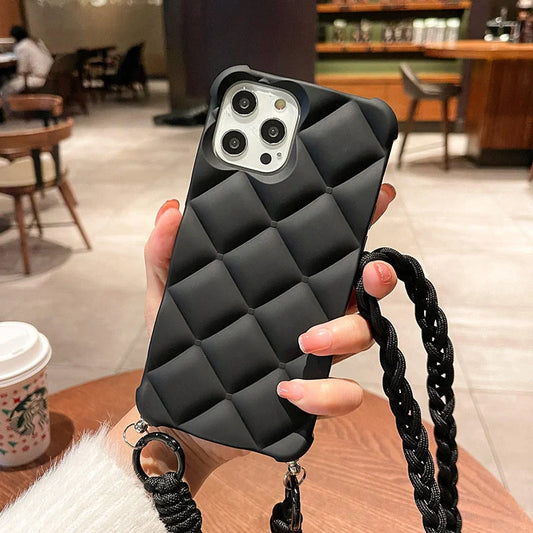 Cross-body strap Apple 14 phone case with silicone protection and fall prevention function, offering secure carrying and impact resistance for iPhone 14 models in multiple colour options including navy blue and wine red.
