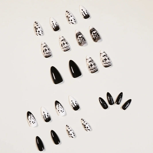 Dark Punk Skull Wear Manicure Fake Nails: 24-piece set with detailed skull designs for creating bold, customised nail art looks in minutes