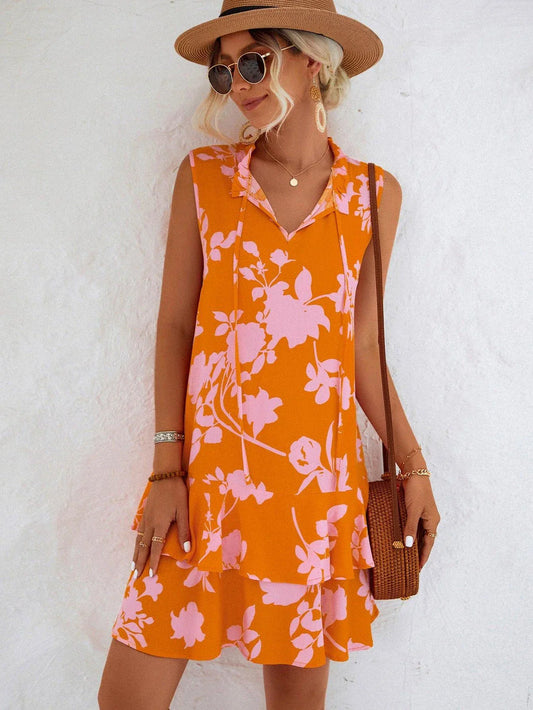 Shopfluxpro NZ Stylish Floral Frock with Tie Neck - A Kiwi Classic