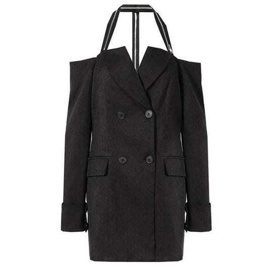 Shopfluxpro NZ Stylish Halter Neck Double-Breasted Black Blazer - Perfect for Kiwi Women