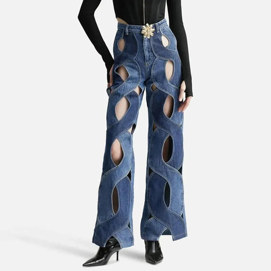 Shopfluxpro NZ Stylish High-Waist Floral Jeans with Distressed Detailing