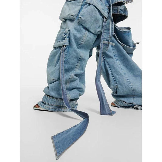 Shopfluxpro NZ Stylish High-Waisted Cargo Denim Trousers with Unique Details