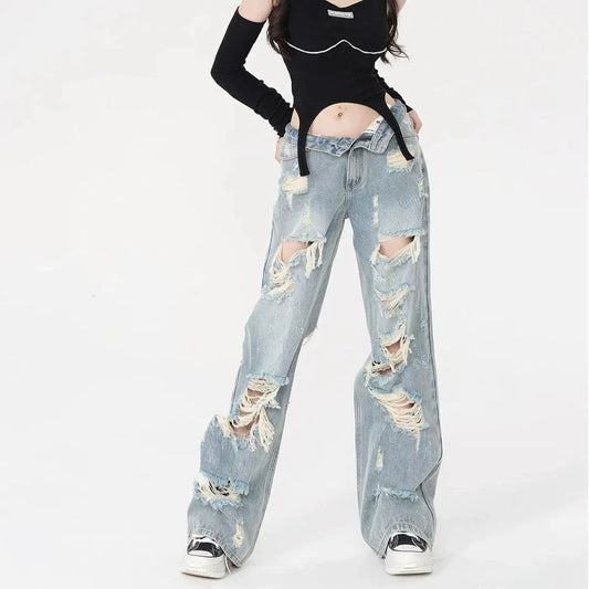 Shopfluxpro NZ Stylish High-Waist Light Blue Straight Jeans