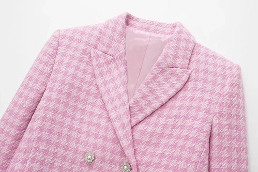 Shopfluxpro NZ Stylish Houndstooth Suit: Casual Jacket and Textured Culottes for Kiwi Women