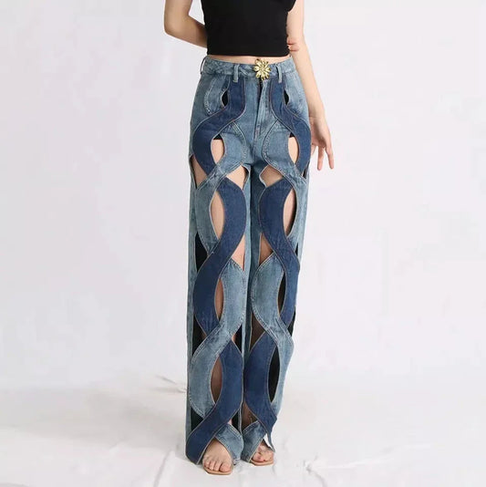 Shopfluxpro NZ Stylish High-Waisted Slim Fit Patchwork Denim Jeans