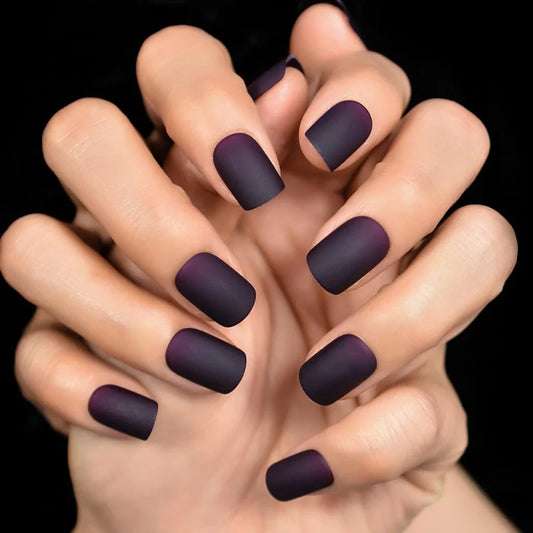 Shopfluxpro NZ Stylish Matte Purple and Black Squoval Fake Nails - Salon Quality at Home