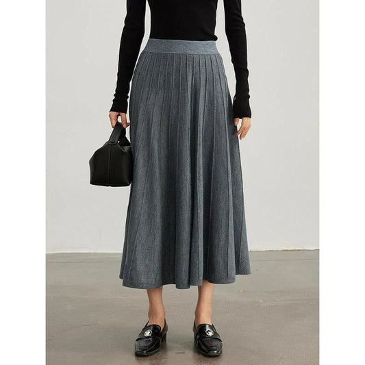 Shopfluxpro NZ Stylish Mid-Calf Pleated Wool Skirt for the Chilly Seasons