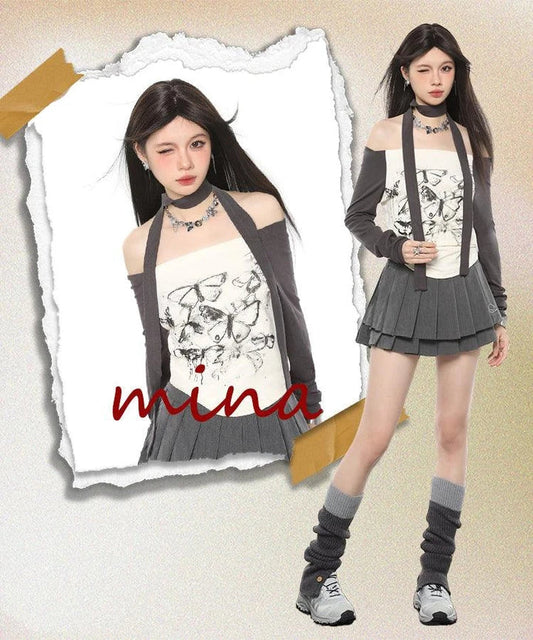 Shopfluxpro NZ Stylish Off-Shoulder Long Sleeve Top with Butterfly Print