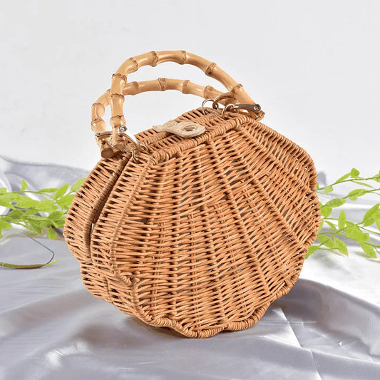 Shopfluxpro NZ Stylish Rattan Straw Bag with Conch Shell Design