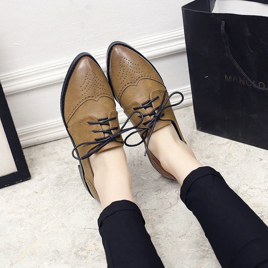 Shopfluxpro NZ Stylish Retro British-Inspired Low-Heel Lace-Up Shoes