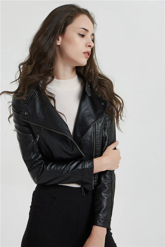 Shopfluxpro NZ Stylish Women's Short Leather Jacket with Edgy Detailing