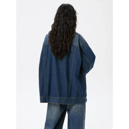 Shopfluxpro NZ Stylishly Chic Denim Coat with Trendy Geometric Design