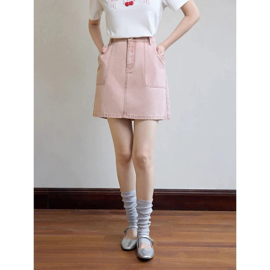 Shopfluxpro NZ Summertime Chic: High Waist Pink Denim A-Line Mini Skirt