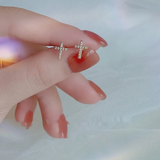 shopfluxpro.com 2024 Stainless Steel Cross Earrings with Inlaid Zircon for Women