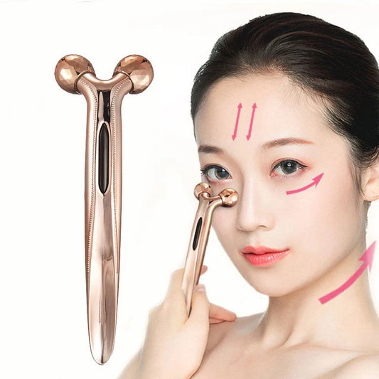 3D face-lifting device manual roller massager with positive ion function featuring ABS, acrylic, metal construction and UV plating in silver or rose gold options