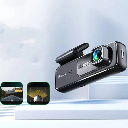360 dash cam K380 with 130-degree wide-angle lens records 1920x1080 resolution footage through 4-piece spherical glass lens system for clear road documentation