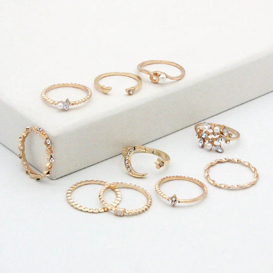 shopfluxpro.com Bohemian Fashion Star Moon Love Pearl Leaf 10-Piece Ring Set