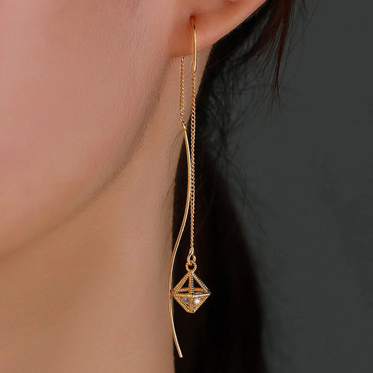 shopfluxpro.com Gold Bronze Cutout Zircon Tassel Earrings with European Style