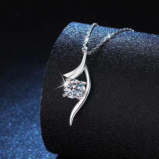 Shpfluxpro NZ 925 Sterling Silver Classic Four-claw 1 Karat-inch Diamond Necklace
