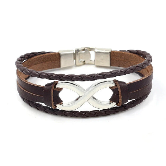 Shpfluxpro NZ Alloy lucky figure 8 leather bracelet with stainless steel accents