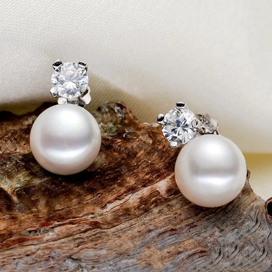 Shpfluxpro NZ Round pearl stud earrings in silver with 8-9mm pearls