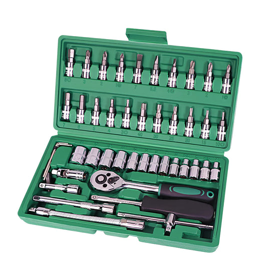 46-piece metric socket set with alloy steel construction and plastic storage case