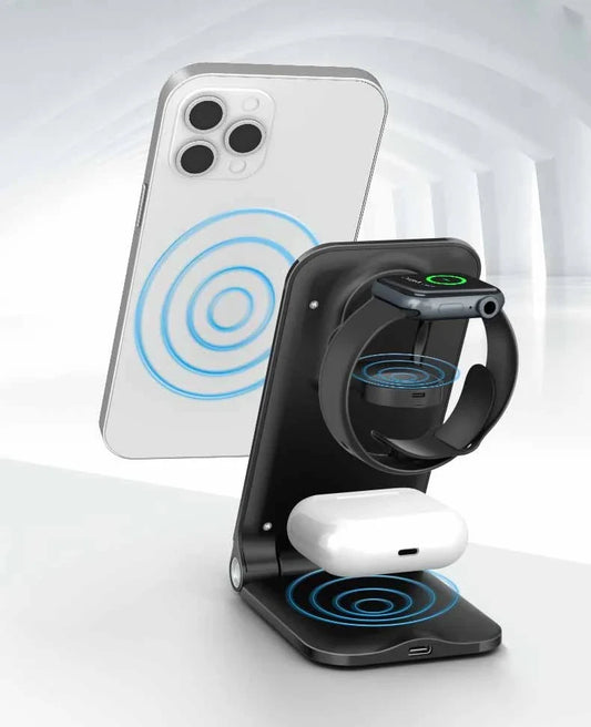 Versatile 3-in-1 Wireless Charging Station for Phones, Watches, and Earbuds