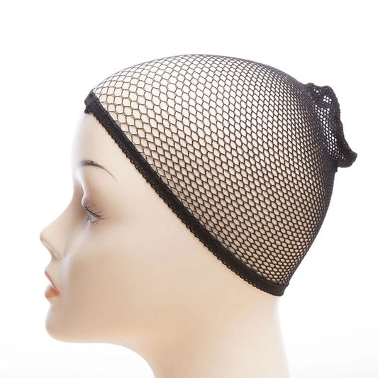 Wig invisible fixed fabric hair net with plaid geometry pattern: Unisex two-head pass design in cloth material, individually packed for hygiene and convenience, available in black and skin colour options