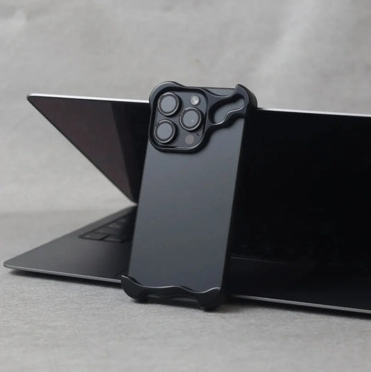 Zinc alloy phone case with anti-drop protection for iPhone 13-15 models featuring minimalist design in five colour options including Dark Night Purple and Gentleman Black