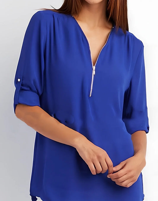 Women's Zip V-Neck Short Sleeve Loose Shirt in Multiple Colours