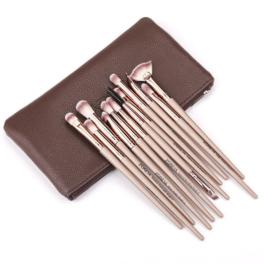 ZOREYA15 professional makeup brush set with 15 synthetic hair brushes ranging from 13-18.5cm for precise application and aluminium ferrules with wooden handles for balanced control